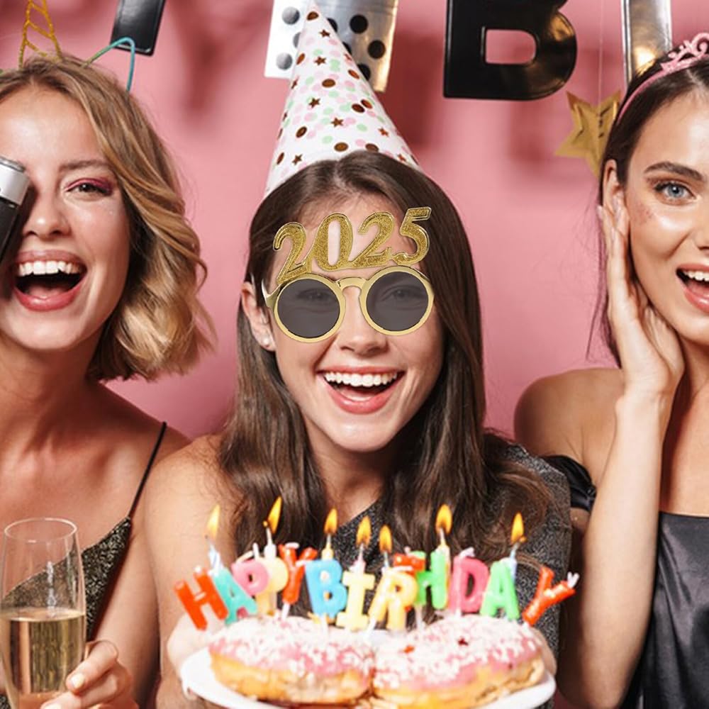 نظارات شمسية 2025 Novelty: نظارات رقم 2025 تبدو مشرقة ورائعة، جديدة وممتعة. إنها قطعة لا غنى عنها للحفلات ومريحة في الارتداء، والنظارات مناسبة لجميع أنواع الأشخاص
