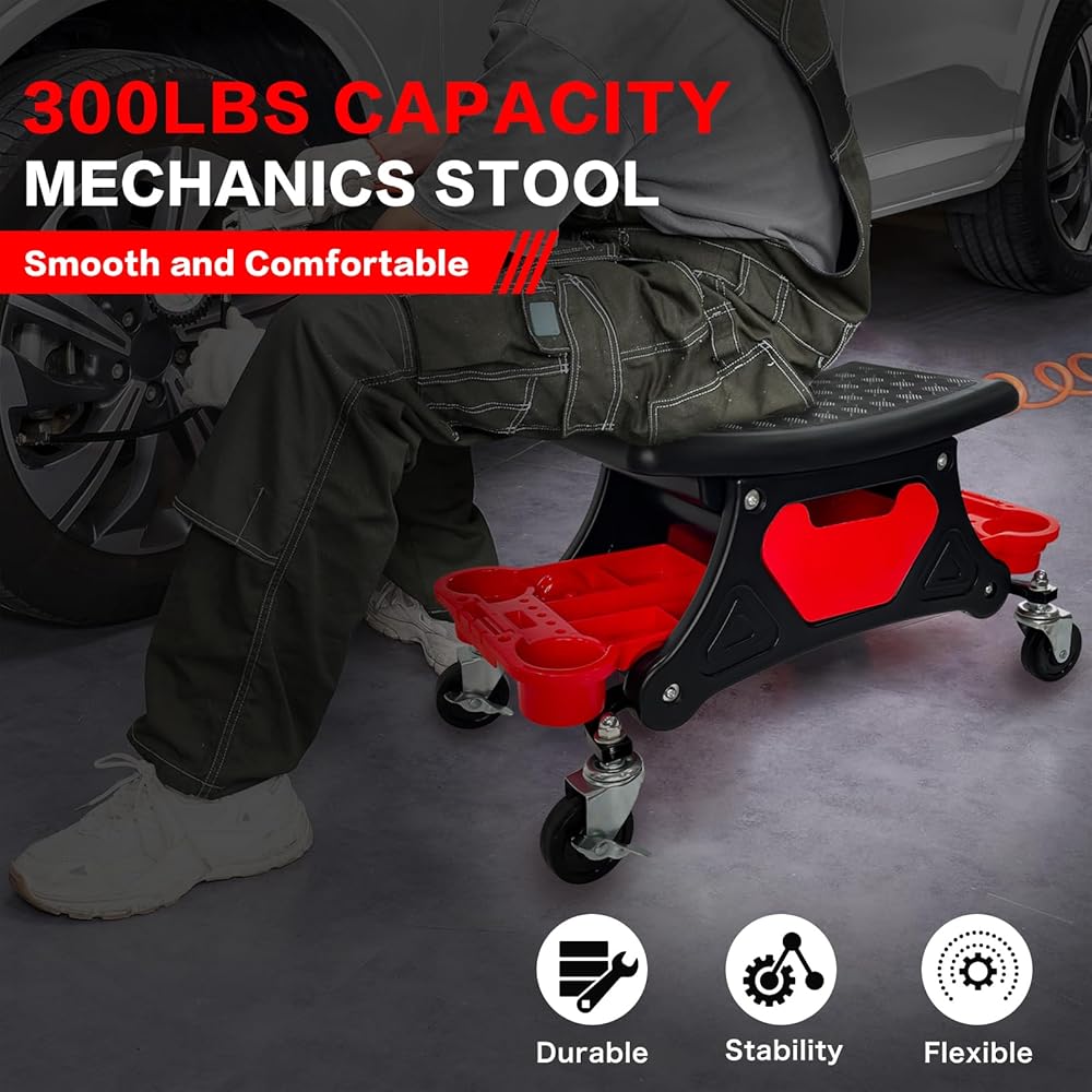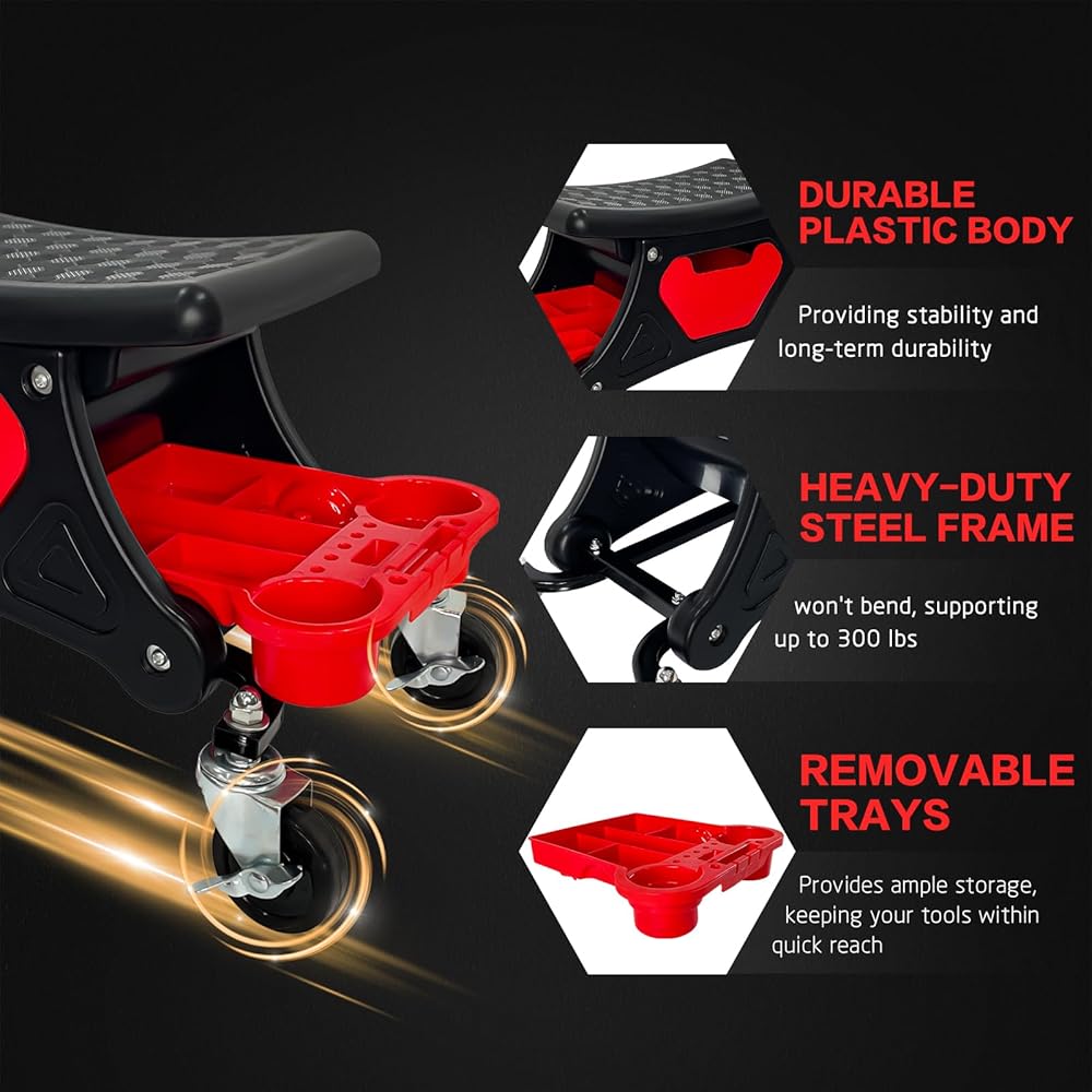 【تخزين مريح】: يتميز مقعد المرآب الميكانيكي المتدحرج بدرج قابل للسحب ودرجين قابلين للإزالة يوفر مساحة تخزين كبيرة، مما يحافظ على أدواتك في متناول اليد بسرعة، بما في ذلك الأدوات والخرق والمشروبات وغيرها من مستلزمات العناية بالسيارات وإصلاحها. مع قسمين لفتحة البطاقة الصواني وملصقات التثبيت، يبقى جهازك ثابتًا في مكانه، حتى أثناء التنقل.