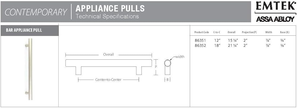 • 86351 - BAR Appliance Pull 12” by Emtek Contemporary Collection.