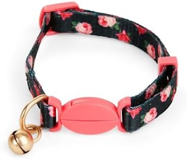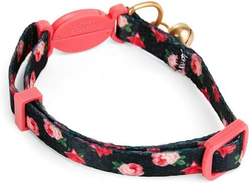 يتميز طوق القطط Youly Pink Rose Print باللون الأسود بنمط زهور مبهج وأجزاء صلبة مذهبة لخلق طريقة أنيقة لربط بطاقات تعريف قطتك.