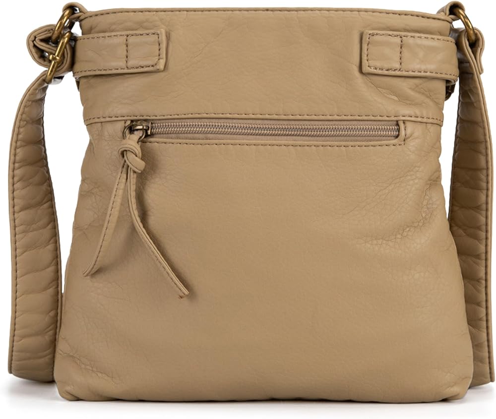 This multi-functional crossbody purse, crafted from vegan leather, emphasizes both form and function.