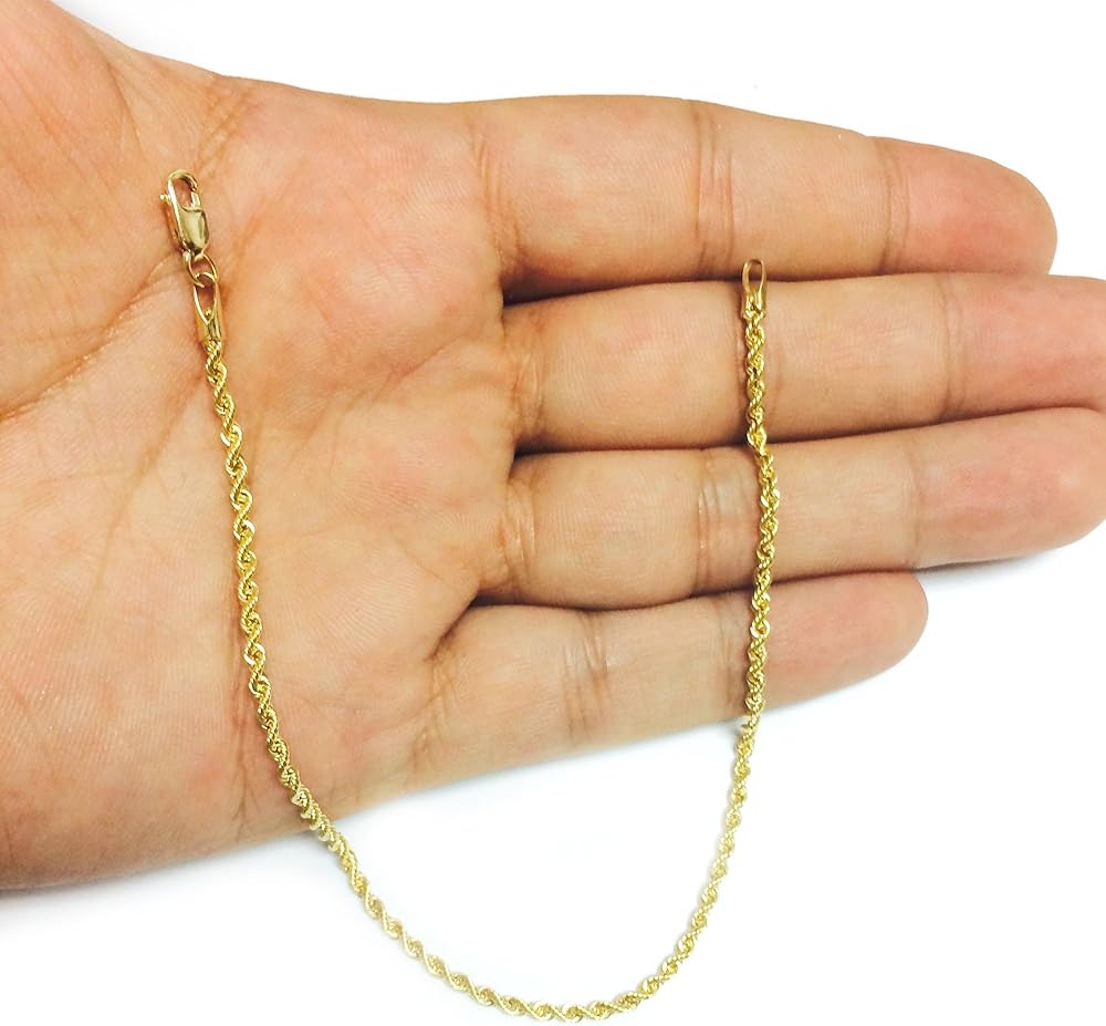 يبلغ عرض قلادة سلسلة الحبل المملوءة بالذهب 2.1 ملم أو 0.08 بوصة. متوفر بأطوال مختلفة للاختيار من بينها