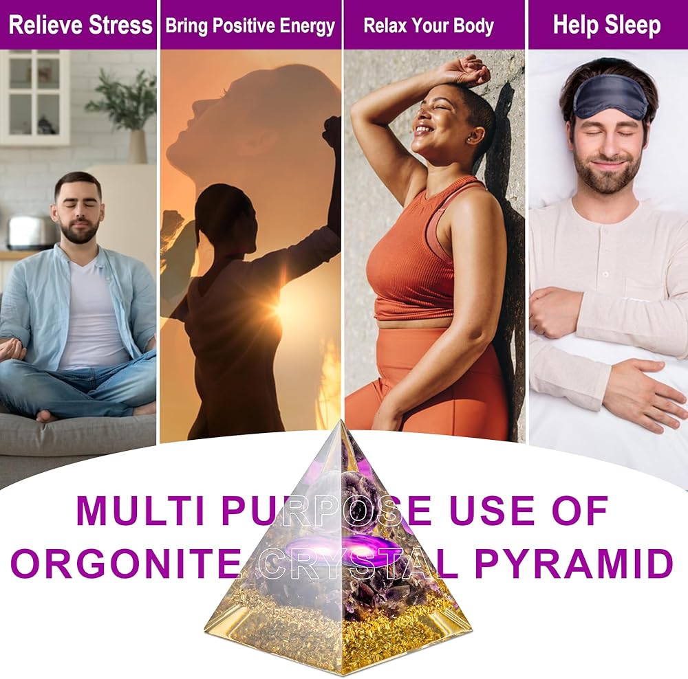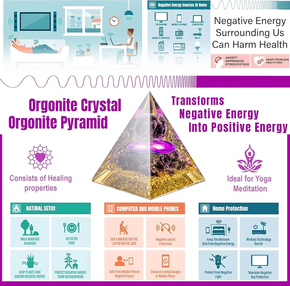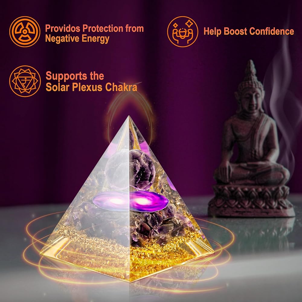 Positive Energy Generator with Crystals for Healing - This Orgone Pyramid absorbs harmful energies and transforms them into positive vibrations, promoting better sleep, reduced stress, and overall well-being. Use it as a protection crystal against E - M - F or place it in your space to elevate your surroundings with crystals and healing stones.