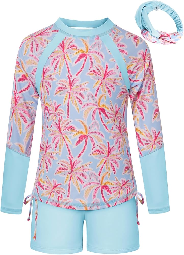 GRACE KARIN Kids Separated Swimsuit Little Girls Long Sleeve Swim Tops+Briefs+Hair Band