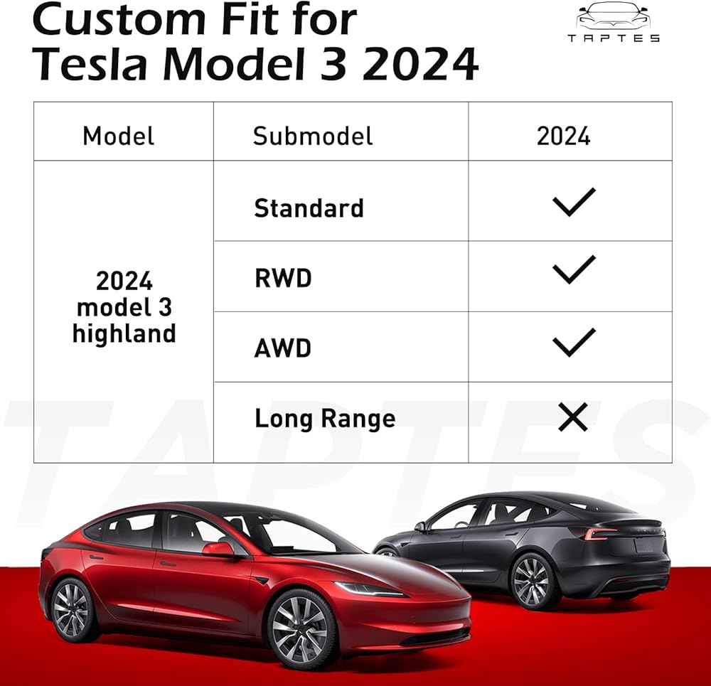 TAPTES 2025 لـ Tesla Model 3 سجادات أرضية المرتفعات وسجادة حماية المقعد الخلفي للمقعد الخلفي 2024 2025، مجموعة كاملة من بطانات الشحن لجميع الأحوال الجوية وغطاء مقعد السجاد لملحقات السيارة الداخلية (8 قطع)