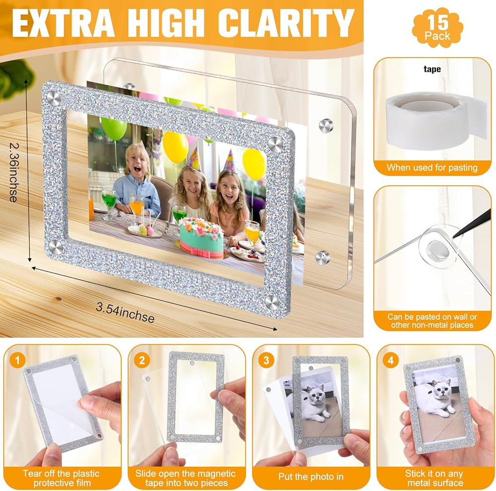 Our package includes 15 quality acrylic fridge magnetic frames, an ample supply to cater to all your photo displaying needs.