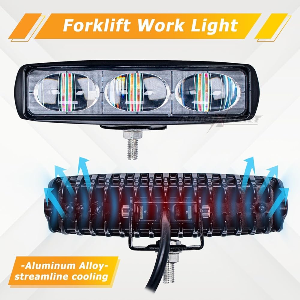 • 【𝟯 𝘅 𝗣𝗖 𝗦𝗽𝗵𝗲𝗿𝗲 𝗟𝗲𝗻𝘀】The safety indicator is equipped with 3 spherical lenses, with stronger light gathering function. Compared with other forklift lights, the light is brighter, more concentrated and has a wider illumination range.