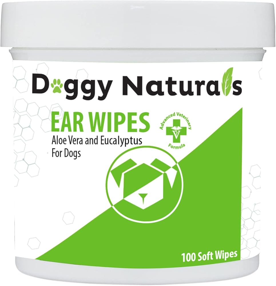 مناديل تنظيف أذن الكلب بالصبار والأوكالبتوس (100 قطعة) - منظف أذني للكلاب لوقف خدش الأذن والالتهابات (صنع في الولايات المتحدة الأمريكية) (مناديل طبية، 100 قيراط مناديل الصبار والأوكالبتوس)