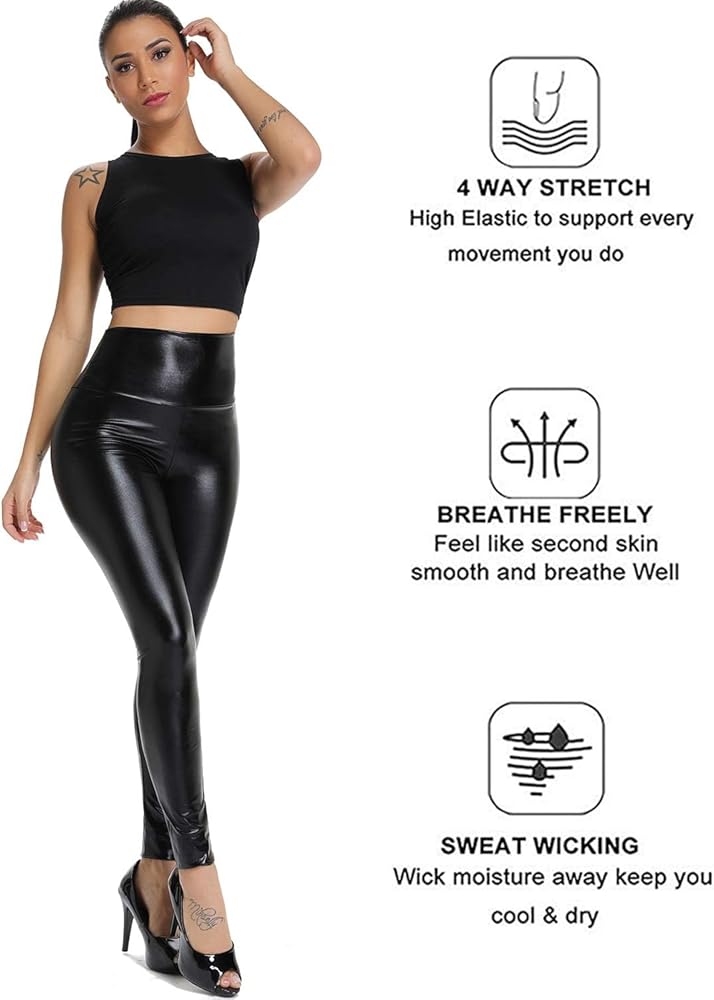 سراويل ضيقة عالية الجودة - تتميز هذه السراويل الجلدية ببطانة داخلية ناعمة لجعلها أكثر راحة. سوف يعانقك الامتداد المذهل في جميع الأماكن الصحيحة. حزام خصر عالي جميل يحملك بشكل مثالي.