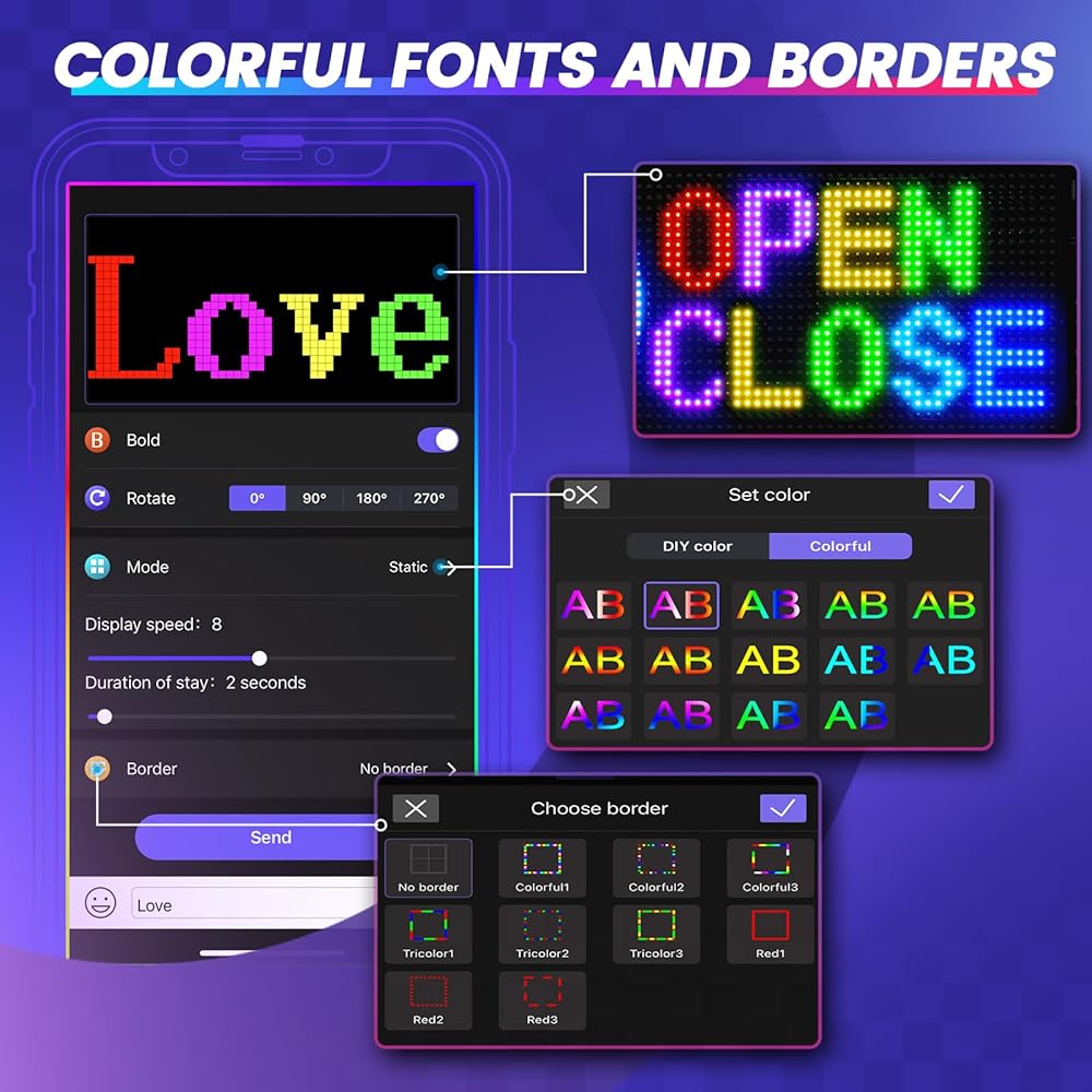 【مشرقة جدًا】تستخدم علامة LED خرزات إضاءة RGB ساطعة. لا يمكن لخرزات المصباح عالية الجودة هذه إرسال ضوء عالي الكثافة فحسب، بل أيضًا استهلاك منخفض للطاقة، وسيكون تأثير خرزات الضوء الملون أكثر جاذبية طوال اليوم.