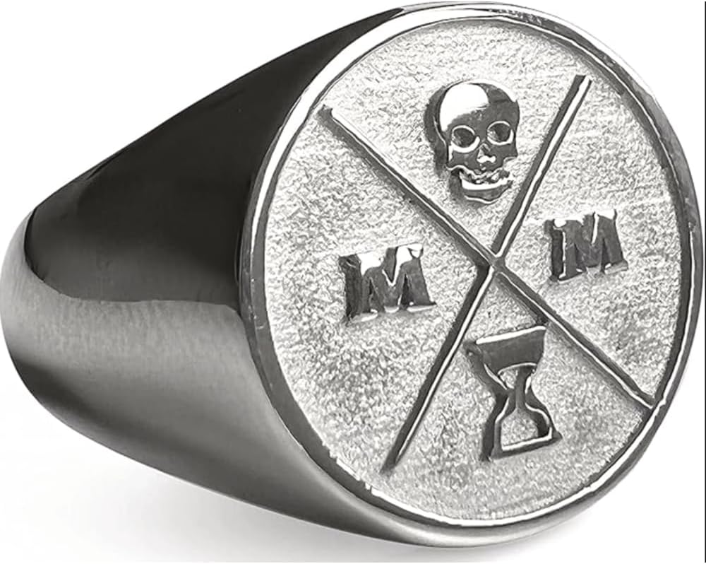 STOICISM BASED DESIGN- Designed for those embracing the practical philosophy of Stoicism, this Memento Mori ring is made of extremely durable 316L stainless steel. The face features 3D metal and a recessed enamel background.
