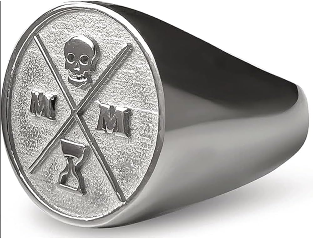 Memento Mori signet rings for men (or Momento Mori) is one of the most important focal points of Stoic philosophy. memento mori ring silver signet ring is designed to help you be reminded of the key message from Memento Mori: you aren't going to be here forever and neither are those that are closest to you, so are you going to waste this life or are you going to make the most of every second? Keeping your mortality close to you is one of the key Stoic meditations and has the intention of making your life much more purposeful.