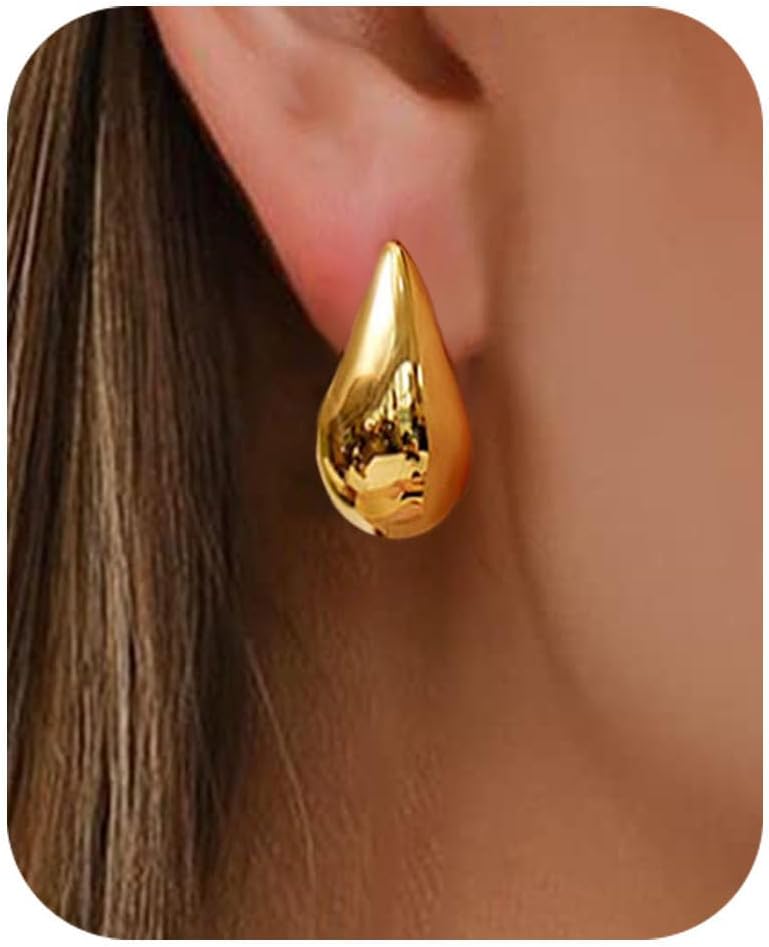 ✦ تصميم فاخر ✦ تم تصميم الأقراط الذهبية المتدلية للنساء لإضفاء تأثير جريء، التصميم السميك لهذه الأقراط الذهبية على شكل دمعة ينضح بالثقة والأناقة العصرية. إن حجمها الكبير وحضورها الجريء يجعلها الإكسسوار المثالي لإضفاء لمسة عصرية تلفت الأنظار أينما ذهبت.