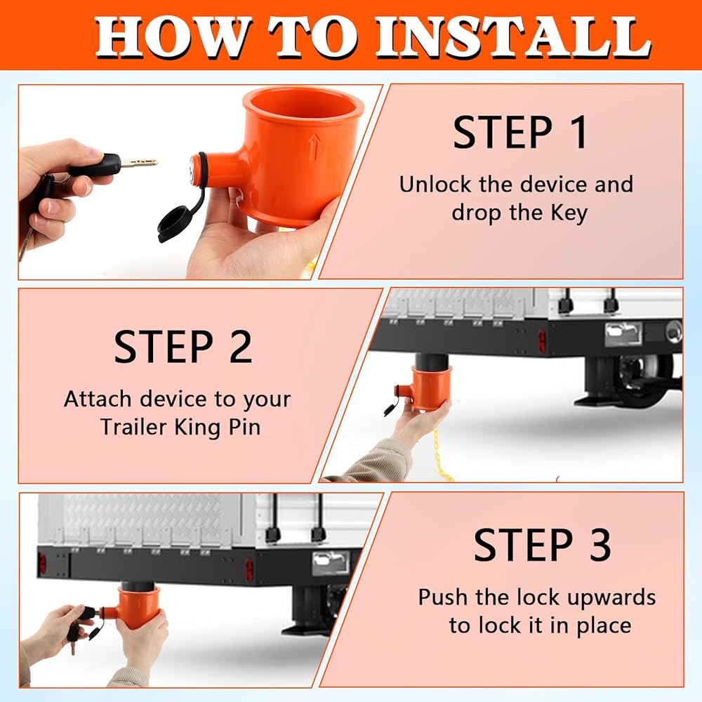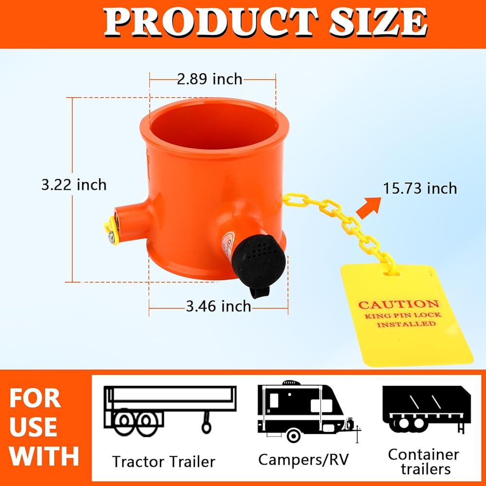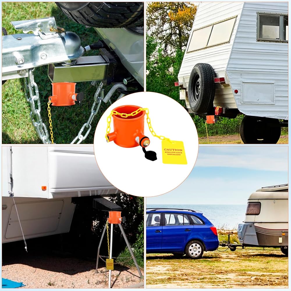 🏕️【WHY Need Trailer Kingpin Lock】------The purpose of a trailer lock is to provide security and prevent unauthorized towing or theft of a vehicle. It is a safety device designed to secure a trailer or towed vehicle by attaching it to the hitch of the towing vehicle. By using a trailer lock, the trailer or towed vehicle cannot be easily disconnected from the towing vehicle without the proper key or combination.