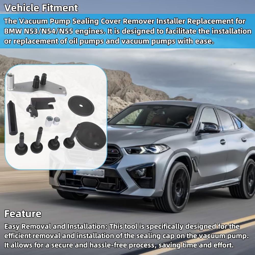 🔗[تركيب السيارة]: بديل أداة تركيب مزيل غطاء مضخة التفريغ لمحركات BMW N53/N54/N55. إنه مصمم لتسهيل تركيب أو استبدال مضخات الزيت ومضخات التفريغ بسهولة.