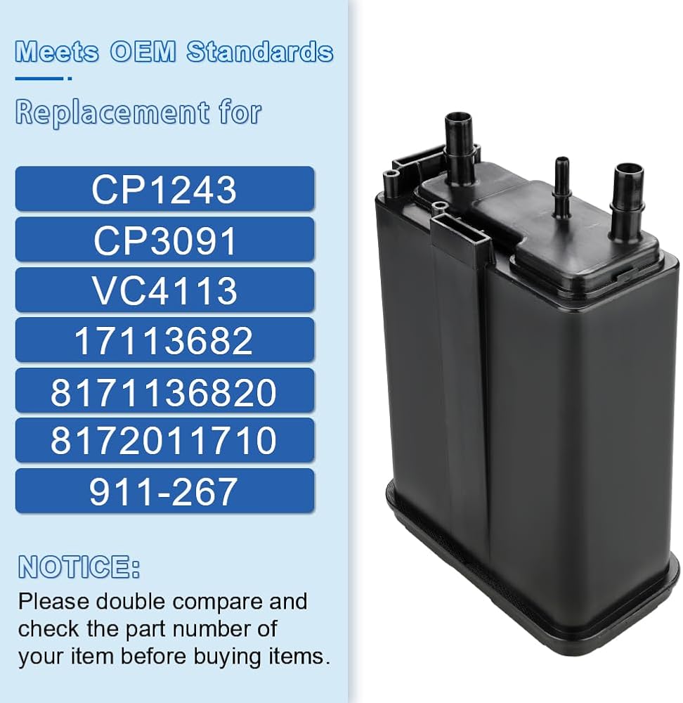Replacement Part Numbers: The vapor canister replacement for 911-267 CP1243 CP3091 VC4113 17113682 8171136820 8172011710