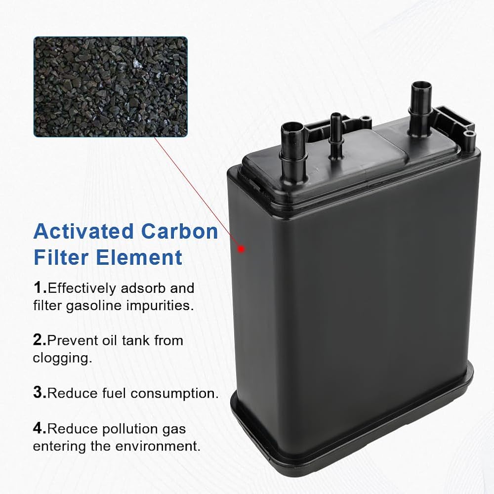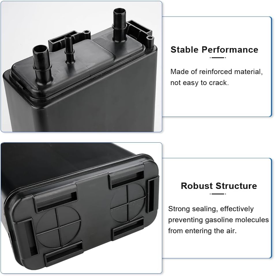 Strong Adsorption: The evaporative emissions charcoal canister contains activated carbon particles with strong adsorption. They can efficiently absorb excessive gasoline molecules and filter out impurities, making gasoline recycled. This helps to reduce fuel consumption and prevent blockages in the fuel tank. Furthermore, it is also able to purify the gas that will be released into the atmosphere