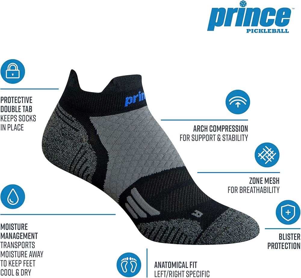 نمط متعدد الاستخدامات للنساء والرجال: ارفع خزانة ملابسك الرياضية مع جوارب Prince Compression Socks، التي تجمع بين العملية والتصميم الأنيق الذي يكمل نمط حياتك النشط داخل وخارج الملعب.