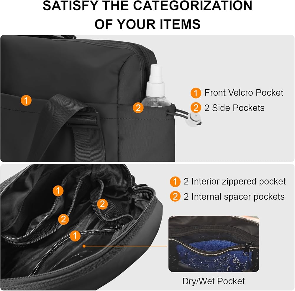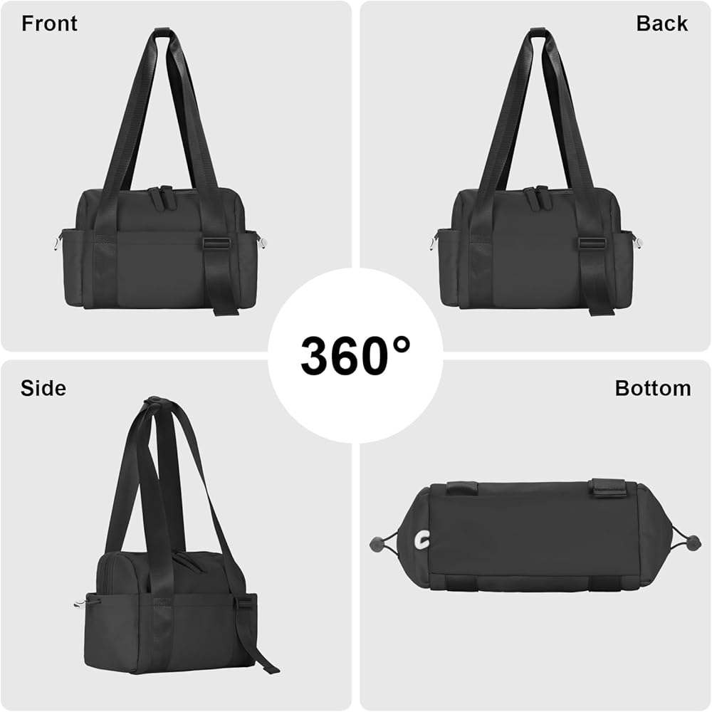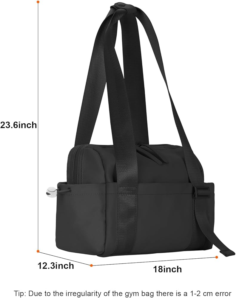 Ⅱ『المقاسات』 الطول * الارتفاع * العمق: 13 بوصة × 4.3 بوصة × 7.8 بوصة الوزن: 1.2 رطل. قد يبدو حجم حقيبة الصالة الرياضية النسائية صغيرًا، ولكنها يمكن أن تحمل زجاجة مياه ومظلة على كلا الجانبين، والجزء الداخلي يمكن للحقيبة حمل مستحضرات التجميل ومستحضرات التجميل وسماعات الرأس والهاتف الخلوي والمحفظة وغيرها من مستلزمات السفر الخاصة باللياقة البدنية. استخدام الفضاء سوف يفاجئك بالتأكيد!