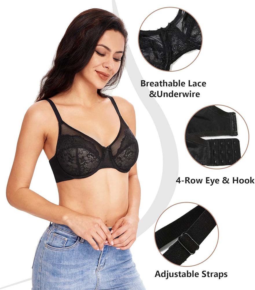 • تصميم مريح للغاية: أكواب دانتيل غير مبطنة مصنوعة من نسيج ناعم مسامي لمزيد من الراحة، كما أن تصميم الدانتيل الأنيق يضيف جاذبية ومرحة، وهو مثالي للارتداء طوال اليوم.