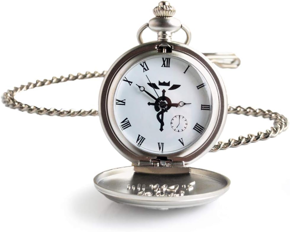 ساعة جيب مع سلسلة: قارئ وقت سهل (مع قرص روما بنمط الصولجان ومنقوش لا تنسى 3.Otc. 11 بوصة وFULLMETALALALCHEMIST) مليء بخصائص Fullmetal Alchemist السميكة، أفضل هدية لمحبي FMA.