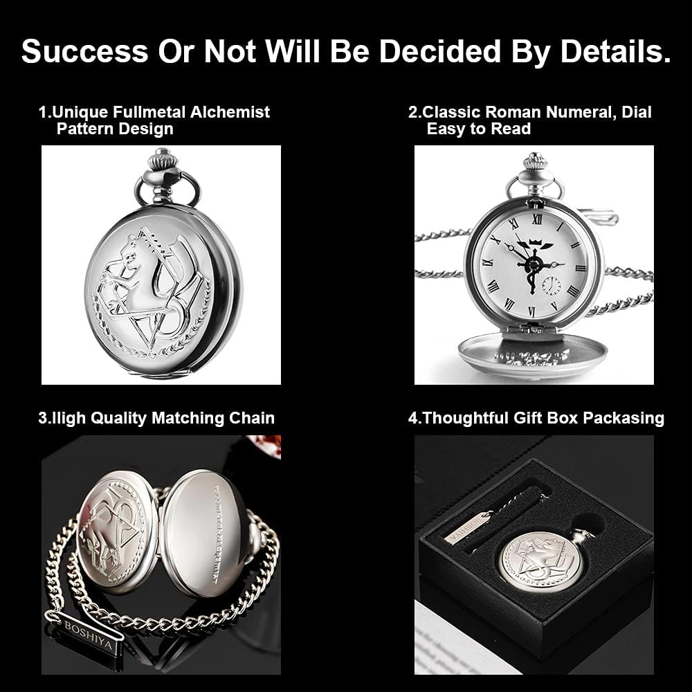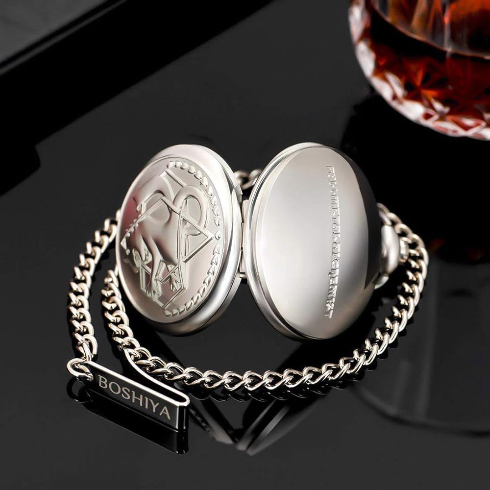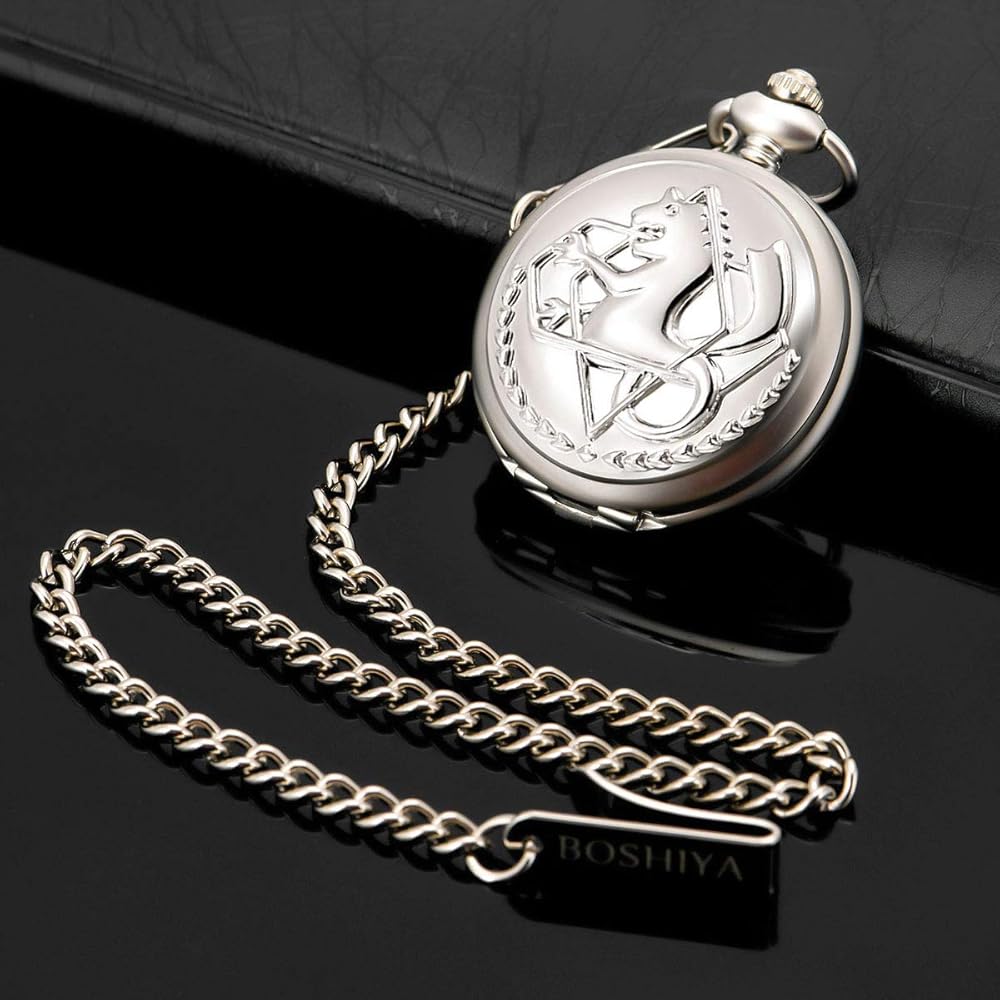إلهام تصميم ساعة الجيب: Fullmetal Alchemist هو مسلسل رسوم متحركة شهير تدور أحداثه في عالم تم فيه تطوير الكيمياء بشكل كبير، ويحكي قصة إدوارد إلريك وشقيقه ألفونس إلريك.