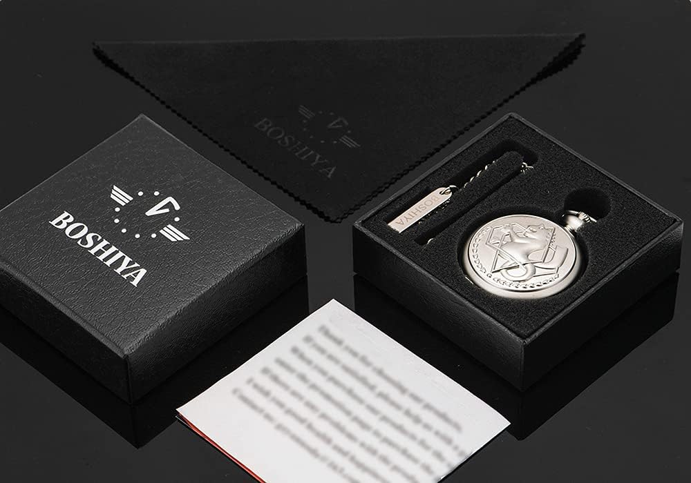 أفضل هدية: ساعة الجيب Fullmetal Alchemis هي مجموعة رائعة خاصة لمحبي Fullmetal Alchemist. رائعة لإكسسوارات الأزياء التنكرية ومنتجات الرسوم المتحركة. هدية رائعة للذكرى السنوية، وعيد الحب، والكريسماس، وأعياد الميلاد، وعيد الشكر، وما إلى ذلك. (تأتي مع حقيبة هدايا زرقاء).