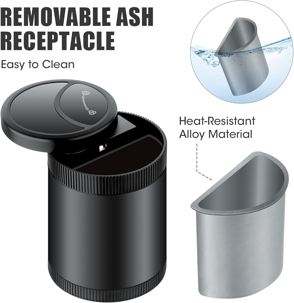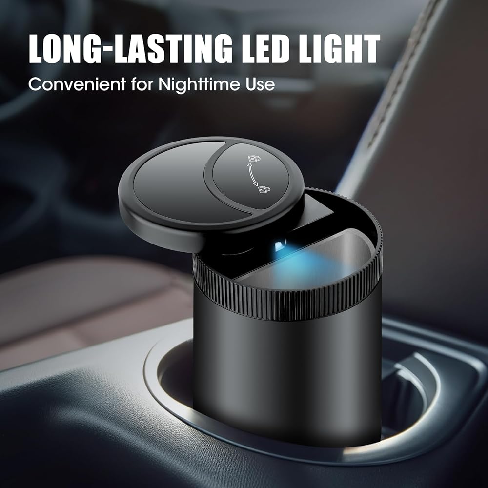 • ♛ LED Car Ashtray: Built-in LED lights add a touch of elegance to your car interior. They create a soothing atmosphere while helping you locate the ashtray in low-light conditions. Enjoy a relaxed driving experience with the LED light function.