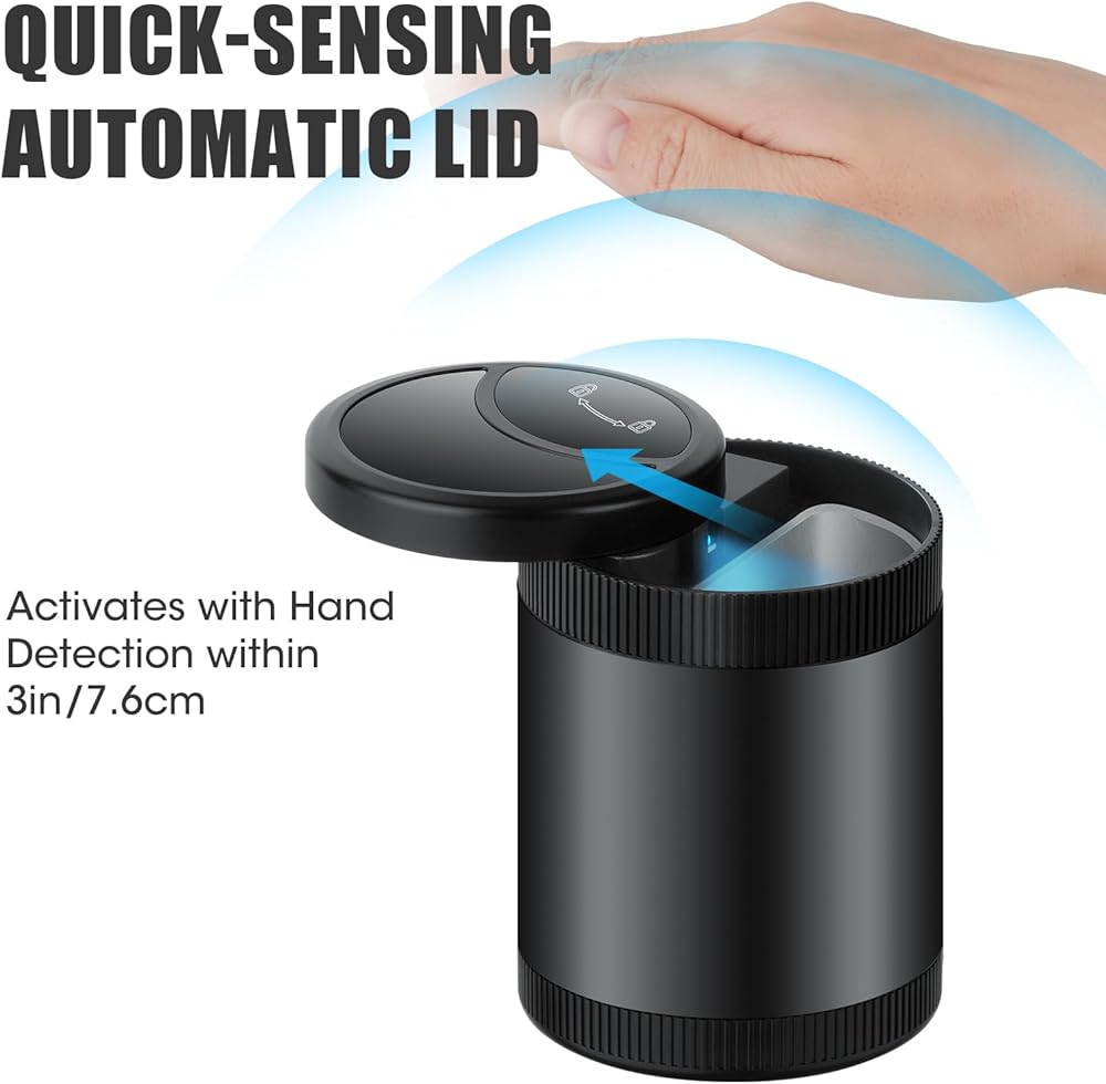 Tomorotec Automatic Open/Close Car Ashtray with Lid, Portable Wireless Design with Dual Operation Modes, LED Lighting for Nighttime Visibility, Stylish & Practical Accessory for Any Vehicle (Black)