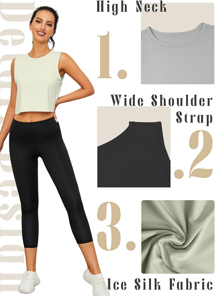 نسيج الحرير الجليدي: قمصان التدريبات النسائية الخاصة بنا مصنوعة من 85% نايلون و15% سباندكس. نسيج الحرير الجليدي الناعم يجعل هذه القمصان بدون أكمام للنساء ناعمة ومطاطة وصديقة للبشرة. قمصان التمرين النسائية الفضفاضة الخاصة بنا جيدة التهوية ومرنة وليس من السهل أن تنكمش بعد الغسيل. لذا فإن قمصان الصالة الرياضية هذه للسيدات ستمنحك شعورًا رائعًا بالراحة. سيمنحك هذا القميص الرياضي القصير للسيدات تجربة رائعة للارتداء اليومي، وليس فقط للرياضة.