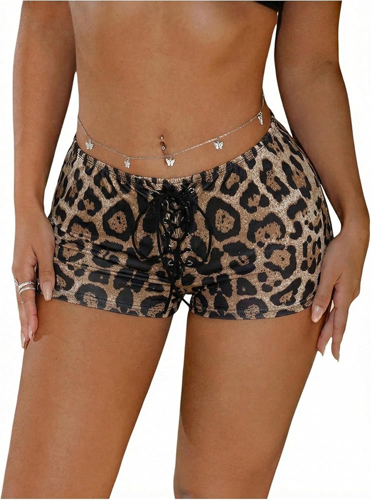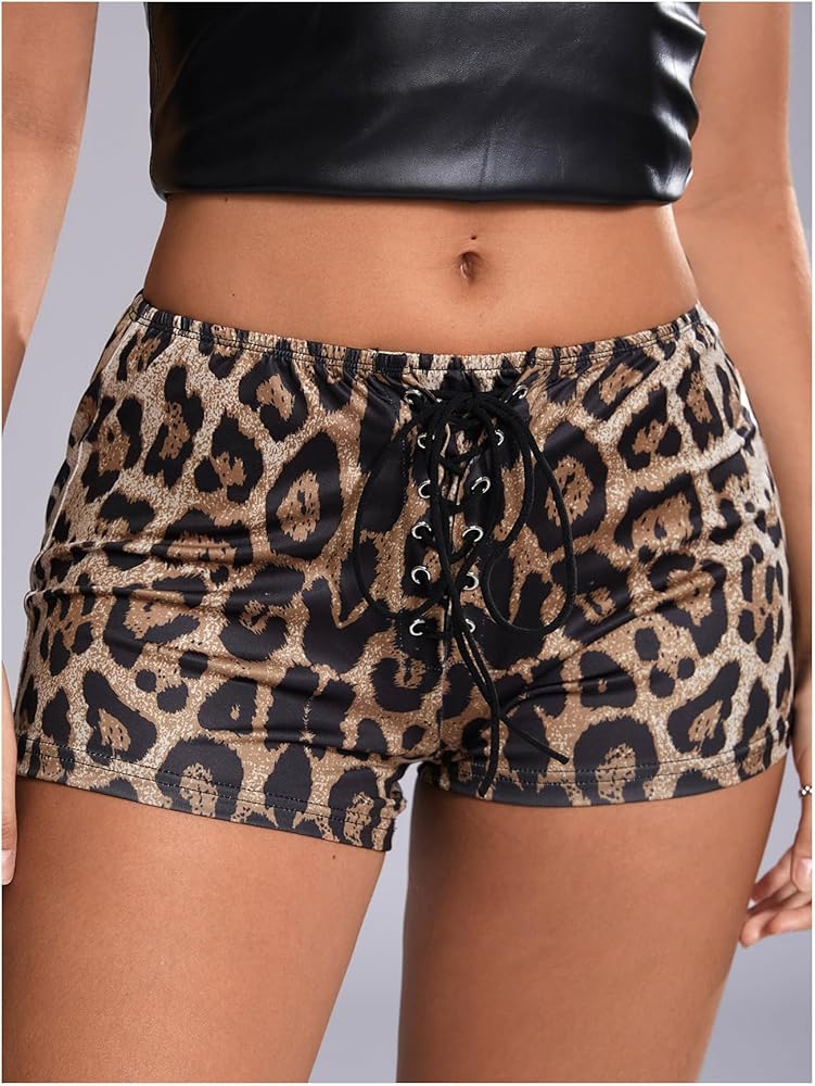 • Features: low rise shorts for women, sexy y2k mini shorts, lace up front, animal print, hot pants, rave outfits, booty shorts, bodycon
