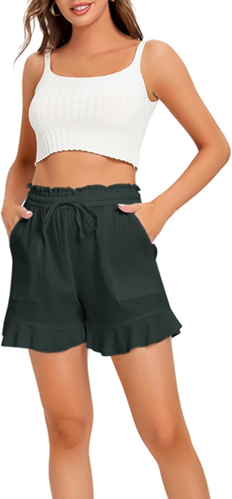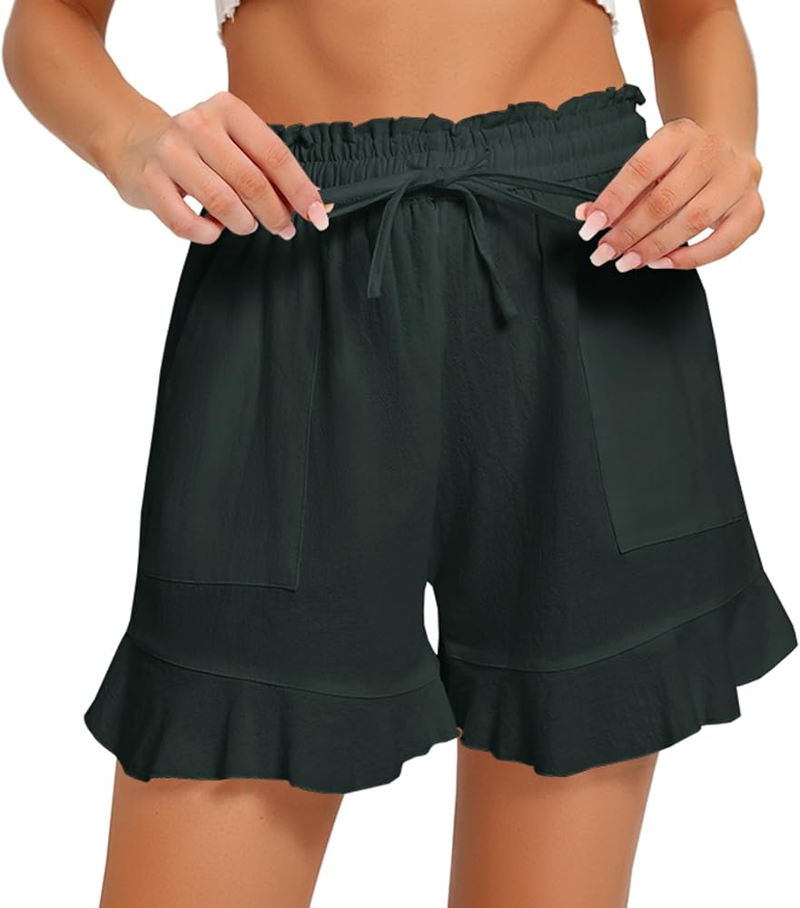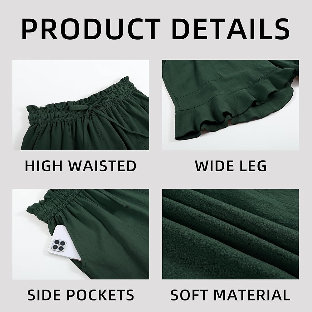 • ☆ المزايا: شورت صيفي من الكتان، خصر مرتفع، ساق واسعة، حاشية مكشكشة، حزام خصر مطاطي، جيبان جانبيان، تصميم مرفرف، لون ثابت، فضفاض، سراويل قصيرة كاجوال للشاطئ.