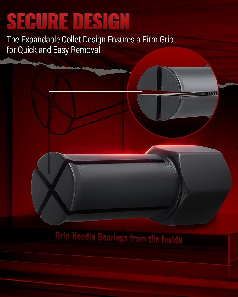 تصميم سهل الاستخدام: أداة سحب محمل عجلة هارلي تحبس محامل الإبرة لمنعها من السقوط في علبة المرافق. فهو يضغط على القطر الخارجي للمحمل، مما يتجنب تلف المحمل أو الكامة أو العلبة، ويضبط المحمل على العمق الصحيح