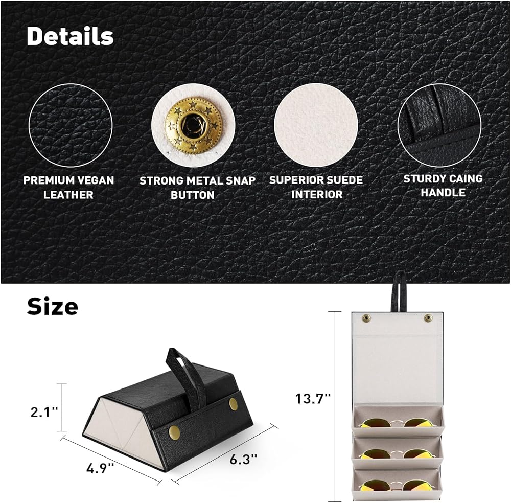 [Classic design sunglasses case travel] Unique classic design sunglass travel organizer can easily store 3 different types of glasses. The reasonable geometric design of sunglasses can well protect the safety of sunglasses travel organizer.