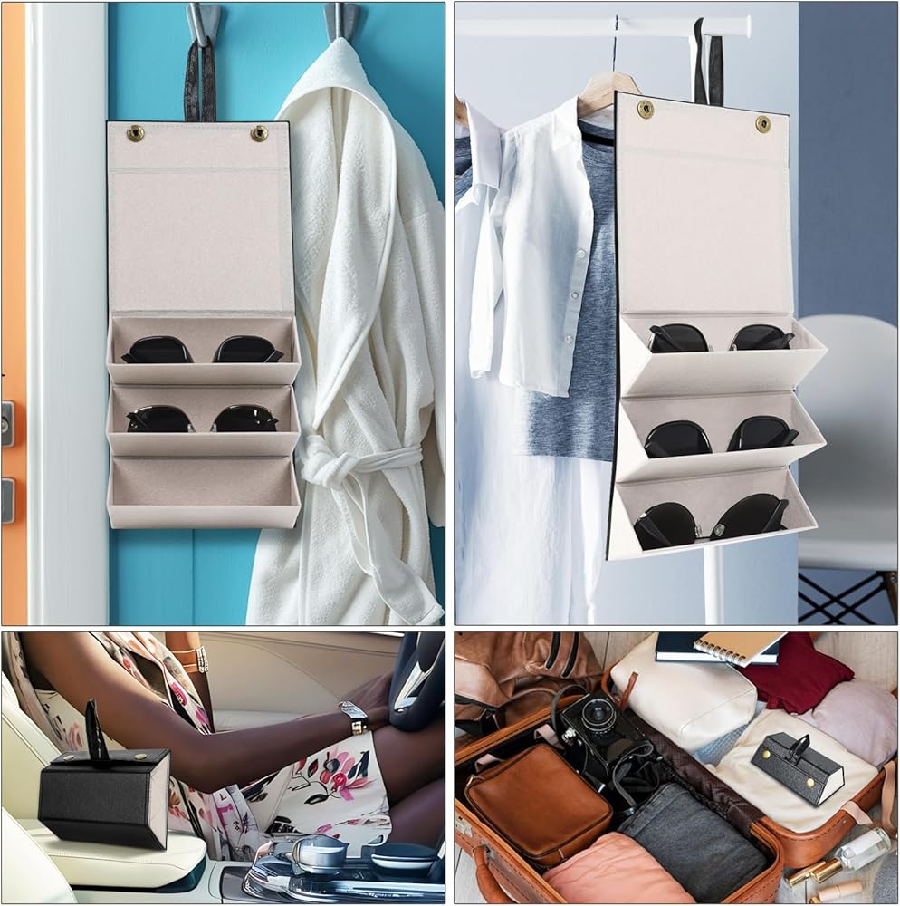 [Versatile travel eyeglass case can be used on many occasions ]Travel glasses case multiple pairs Sunglasses can be widely used at home, travel sunglass case hanging behind the door, on the hanger, sunglasses holder can be placed in the car, and glasses organizers are also a companion on the road.