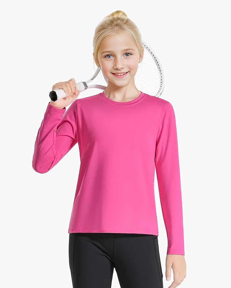 المواد: قمصان طويلة الأكمام للفتيات مصنوعة من نسيج ناعم ومسامي وسريع الجفاف يطرد العرق والرطوبة بعيدًا عن الجسم، مما يسمح لك بالتمدد بحرية أثناء ممارسة التمارين.