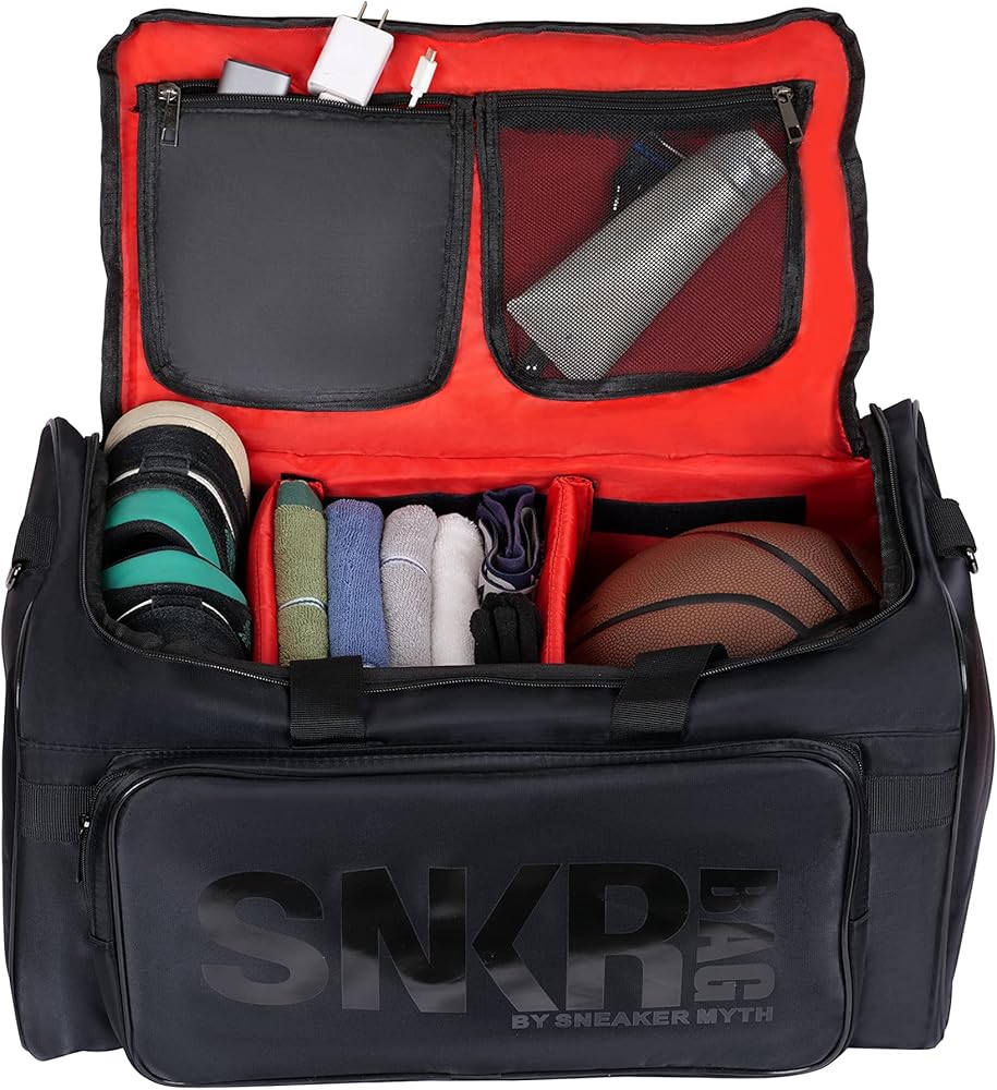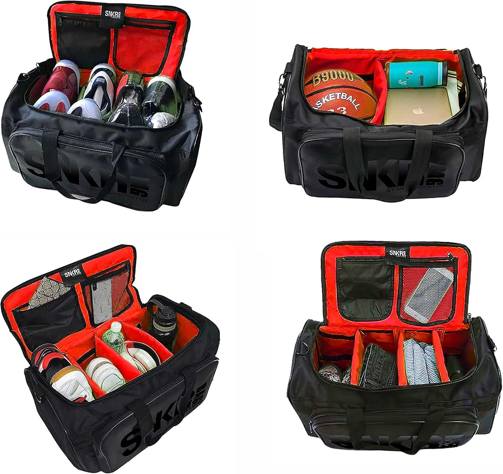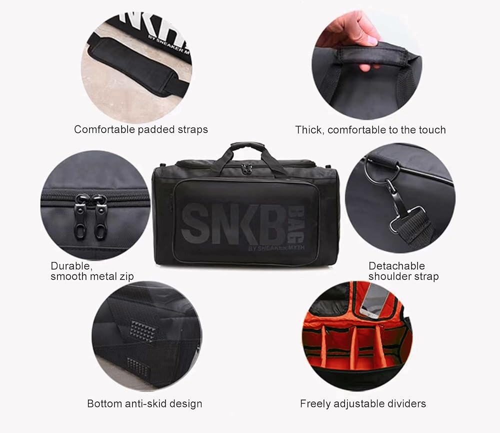 [كبيرة وعملية] تتميز حقيبة السفر الرياضية الكبيرة هذه بثلاثة فواصل قابلة للإزالة لفصل المساحة، مما يجعل من السهل تنظيم متعلقاتك وفقًا لأحجامها أو موضعها. يوجد في الأعلى جراب شبكي يمكنه حمل أشياء صغيرة، مثل سماعات الرأس أو المفاتيح أو الهواتف المحمولة.