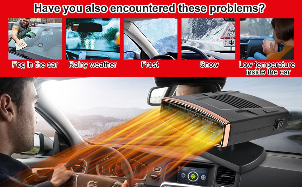 【مساعد الشتاء 】 ترقية سخان ولاعة السجائر للسيارة، وزيادة درجة حرارة الهواء، وإزالة الضباب وإزالة الجليد، وتحسين سلامة رؤية القيادة. مزيل الضباب عن الزجاج الأمامي هو مساعد جيد في السيارة في الشتاء.