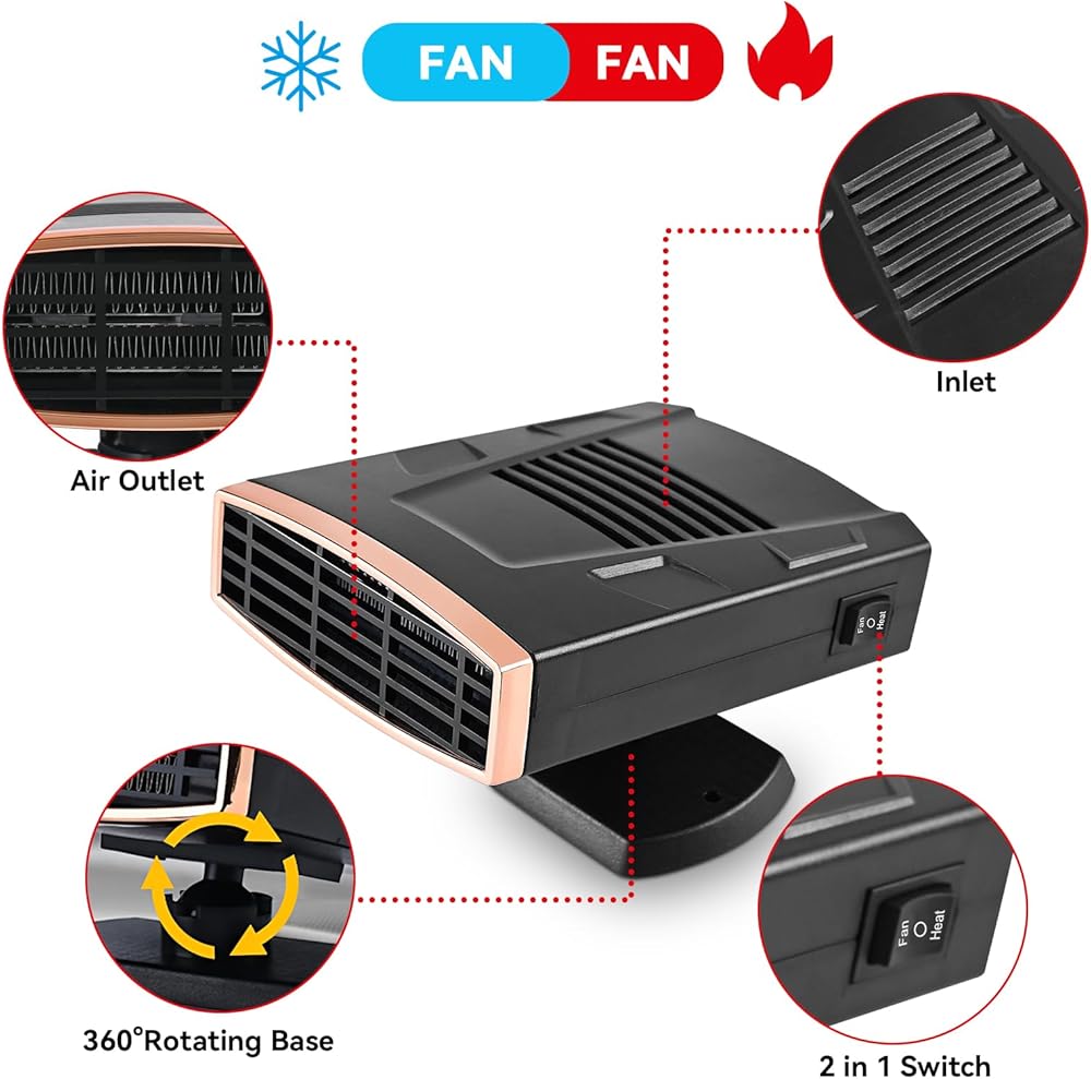 【تصميم متين】سخانات السيارة للسيارة مصنوعة من مادة أكريلونتريل بوتادين ستايرين المقاومة للحرارة. صمام مدمج، حماية تلقائية من ارتفاع درجة الحرارة وسهل الاستخدام. مع كابلات ولاعة سجائر طويلة عالية الجودة بطول 150 سم، مناسبة للتخييم والسفر والتدفئة في الشتاء.