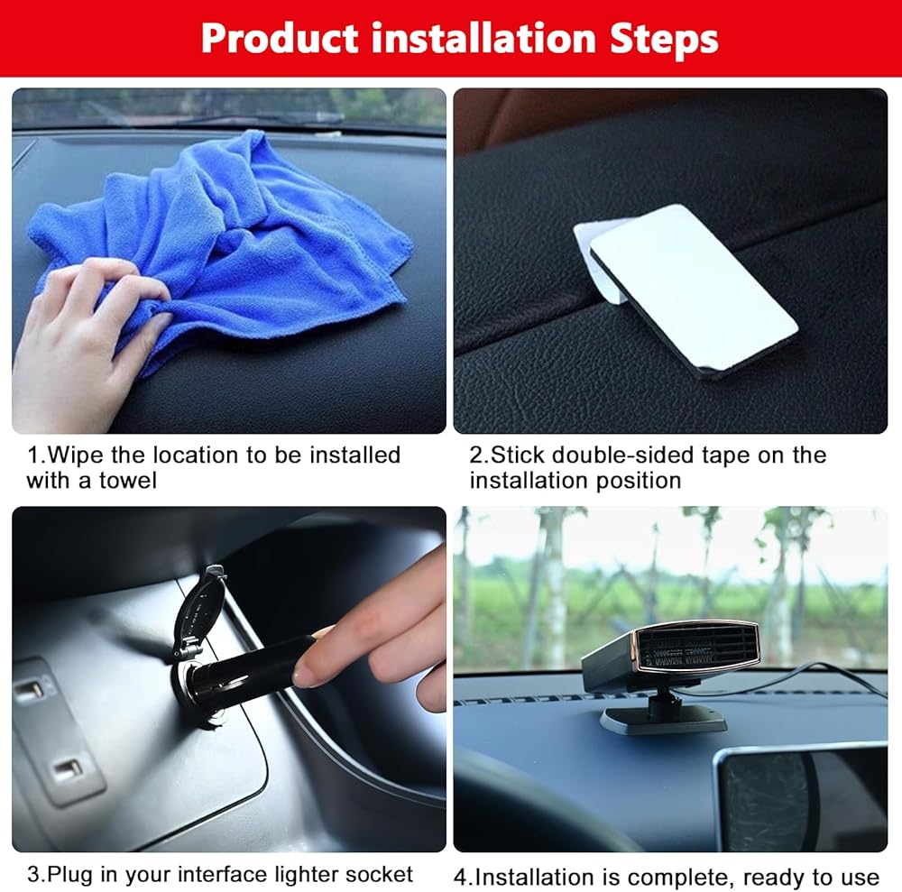 【فتحة تهوية قابلة للتعديل 360 درجة】يحتوي سخان السيارة المحمول هذا على قاعدة قابلة للدوران 360 درجة ويمكن تعديل مخرج الهواء لأعلى ولأسفل بحرية لتحقيق الدفء في جميع الجوانب. سواء تم تثبيته بشريط لاصق أو وضعه على حصيرة مضادة للانزلاق، فإنه يظل آمنًا ومستقرًا أثناء القيادة.