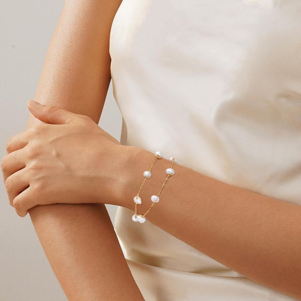 مقاس قابل للتعديل: أساور اللؤلؤ الذهبية للنساء بطول 6.3 سم بالإضافة إلى امتداد 1.2 سم. سلسلة قابلة للتعديل لذلك يمكنك بسهولة تعديل حجم الأساور لتناسب احتياجاتك. يضيف التصميم المتدلي على سلاسل الأساور القابلة للتعديل لمسة من الأناقة، مما يجعلك أنيقة في كل لحظة
