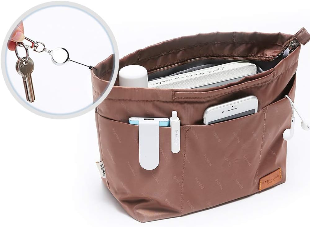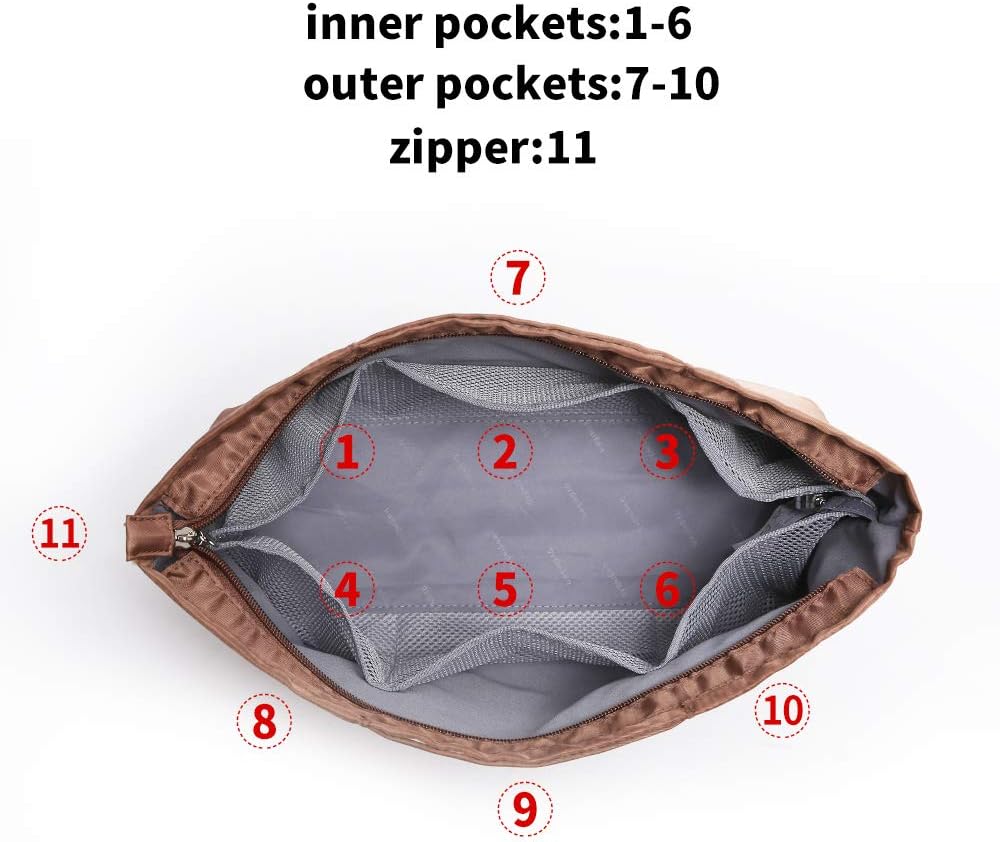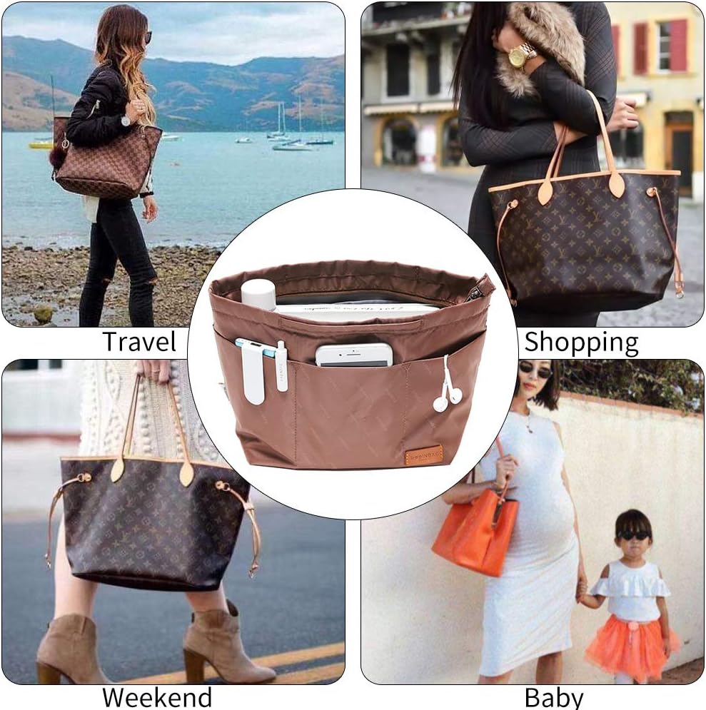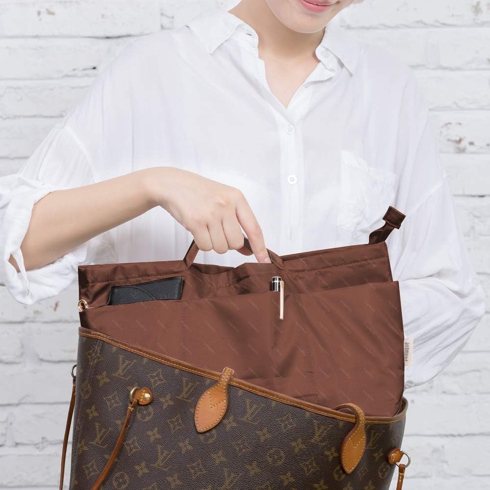 في. ملحق منظم المحفظة بسحاب، حقيبة تخزين من نسيج النايلون مع مقابض، لحقائب اليد النسائية وحقائب اليد، غير ممتلئة، خفيفة الوزن صغيرة الحجم بني