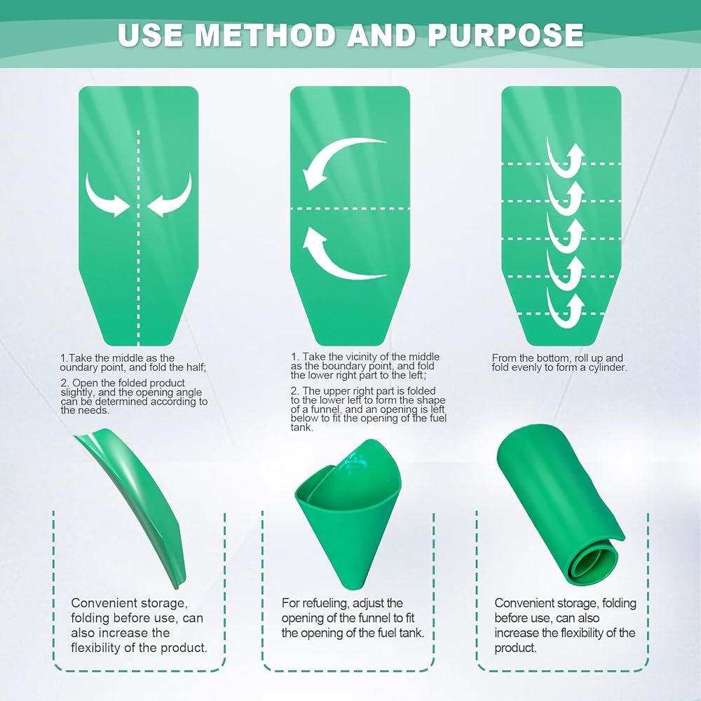 مصنوع جيدًا: قمع الزيت المرن مصنوع من مادة السيليكون عالية الجودة ويحتوي على ألواح فولاذية معدنية لتثبيت الشكل، مما يمنح القمع المرن مرونة عالية وقدرة على التكيف وخصائص أخرى