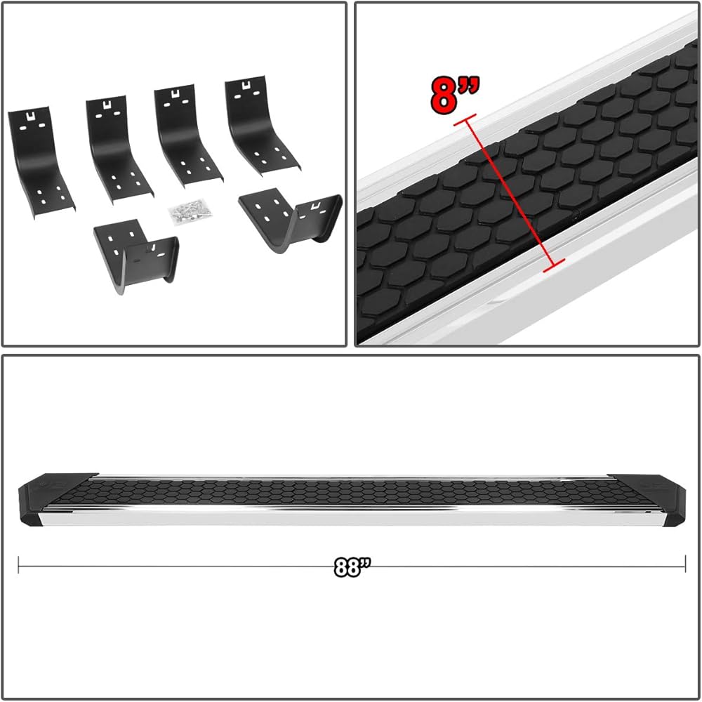 Running boards give your ride a massive boost when it comes to look and utility. Combining the stylish appearance and rugged looks, these inventive running boards are the ideal way to upgrade your truck or SUV. Constructed from high quality grade aluminum frames, you can be sure this running board will withstand the roughest of weather conditions as well as the test of time. They are built tough and are highly corrosion resistant. Getting in and out of your vehicle is easy with the large non-skid molded pads that ensure secure footing.