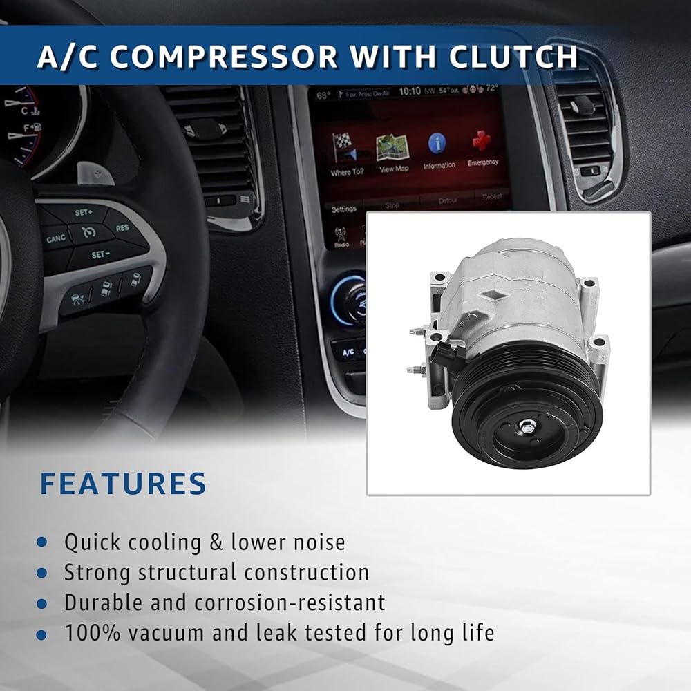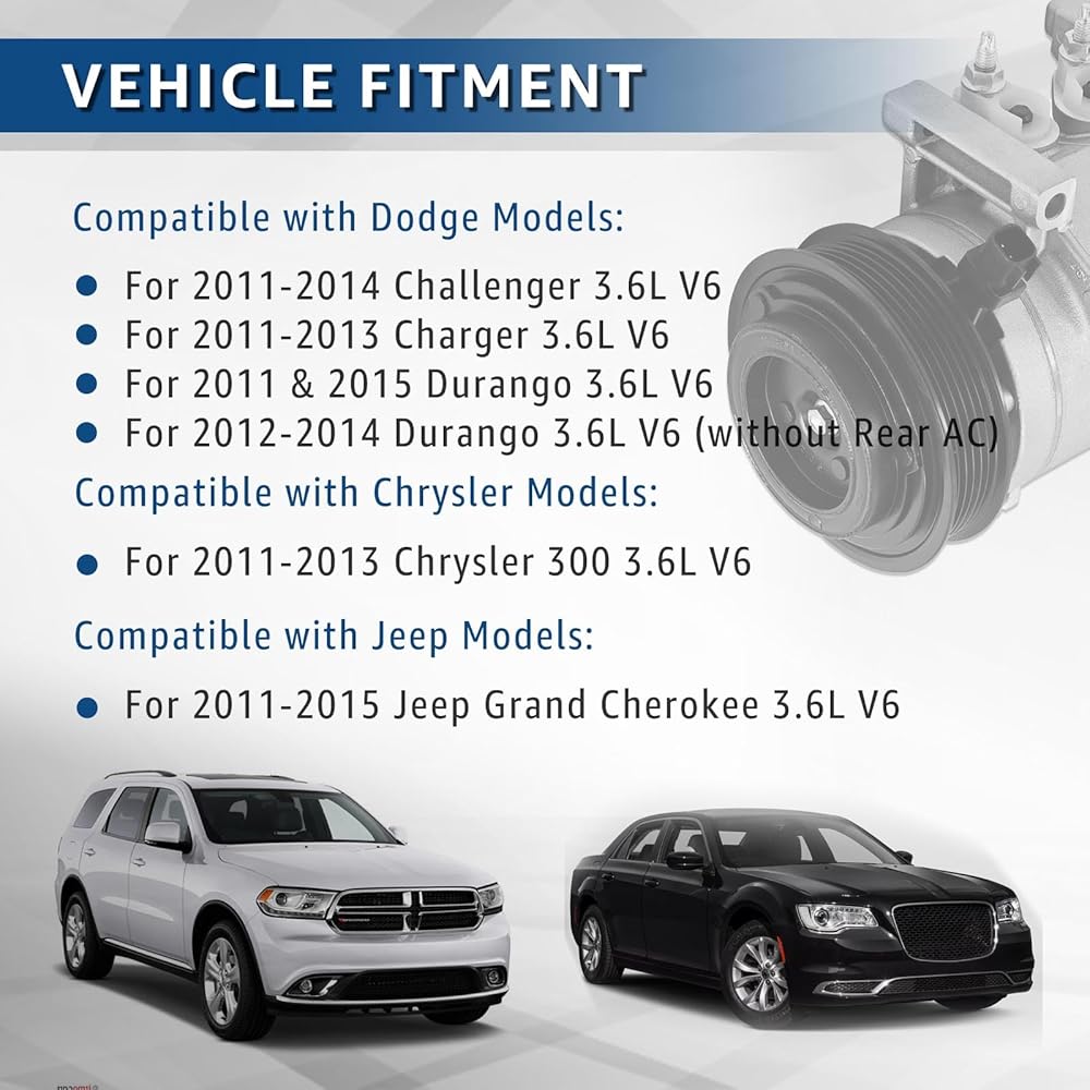 ضاغط مكيف الهواء مع قابض متوافق مع جيب جراند شيروكي 2011-2015 3.6 وكرايسلر 300 2011-2013 ودودج تشارجر تشالنجر دورانجو 3.6 لتر V6 11-15 ضاغط مكيف الهواء