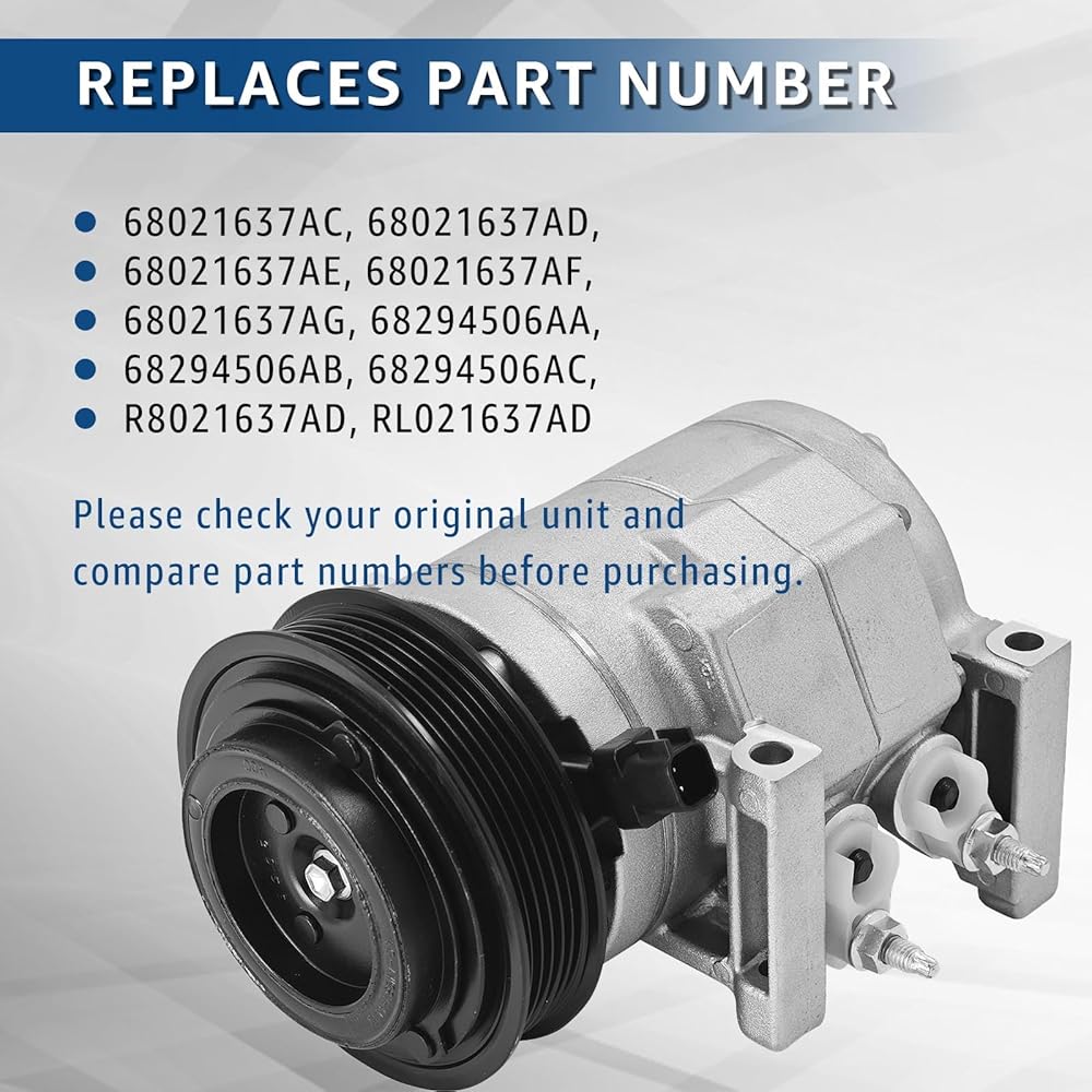 • 【استبدال رقم الجزء 】 68021637AC، 68021637AD، 68021637AE، 68021637AF، 68021637AG، 68294506AA، 68294506AB، 68294506AC، R8021637AD، RL021637AD. يرجى التحقق بعناية من رقم OE والطراز المتوافق.