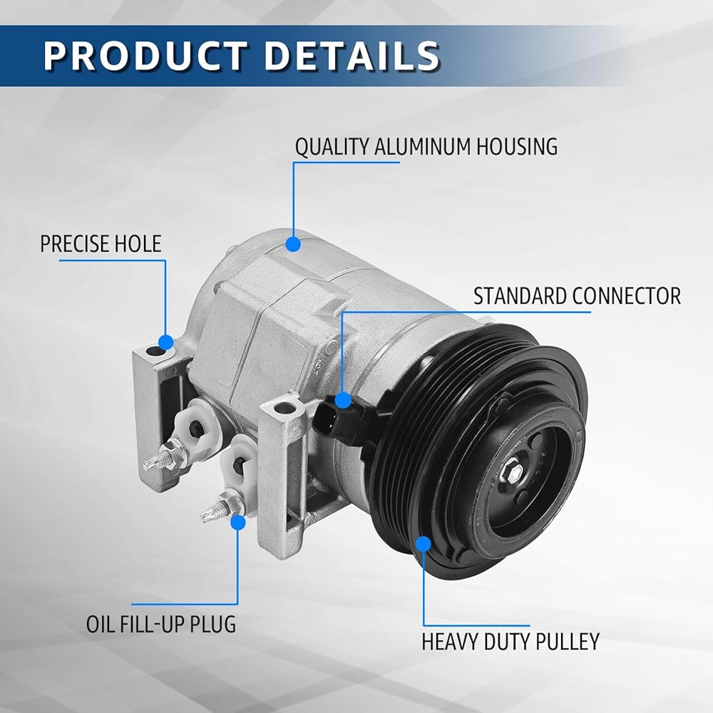 • 【جودة قوية】تم تصنيع ضاغط مكيف الهواء هذا من مواد ألومنيوم عالية الجودة وتم تصنيعه لتلبية معايير جودة المعدات الأصلية، وهو قوي ومتين، ويدوم لفترة طويلة.