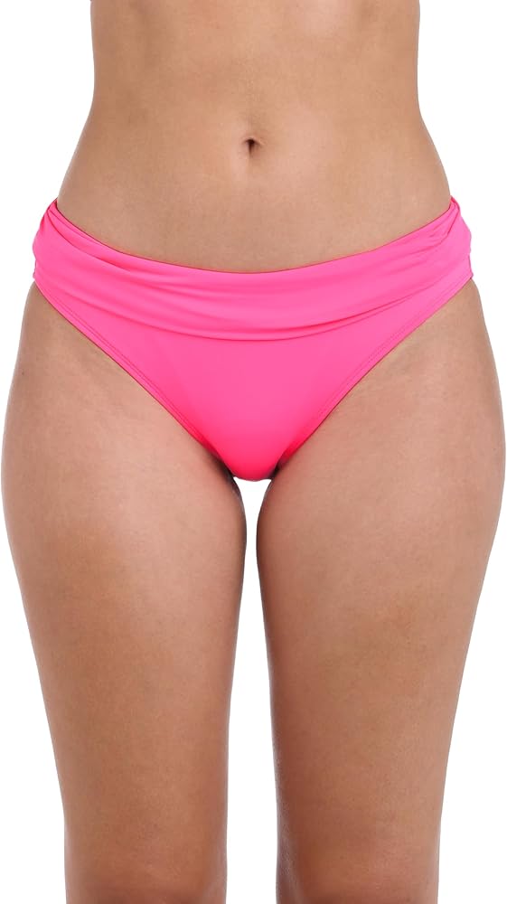Our hipster bikini bottoms instantly smooth and slim with an eye-catching ruched band that conceals worry areas. The hipster cut flatters your figure in front with discreet coverage in back that won't take away from your curves.
