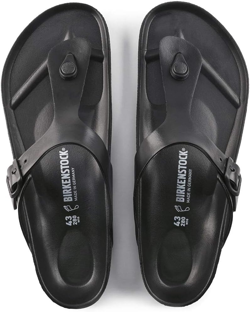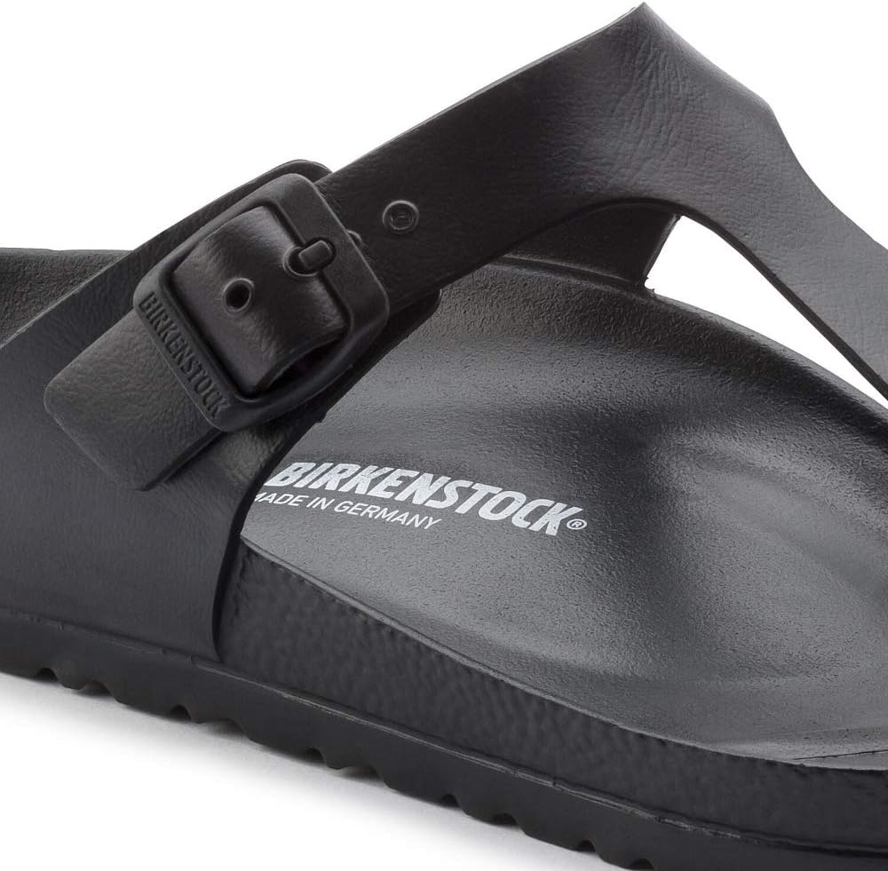 • The BIRKENSTOCK Gizeh is our classic thong sandal. Modeled on the cork original, this sandal is made from ultra lightweight and highly flexible EVA. These colorful sandals are shock-absorbent, waterproof, and skin-friendly. Wear them at the beach, in the garden, or in wellness and spa areas. It's the perfect addition to your classic BIRKENSTOCK sandals.