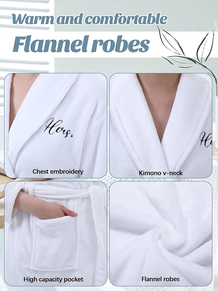 • Cozy and Pleasant: our matching robes for couples comprise 300g flannel fabric, which stands for excellent warmth and softness; Easy to launder, and protects against deformation or color fade, our robes lend an exceedingly comforting experience